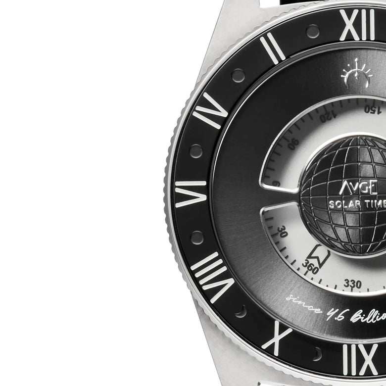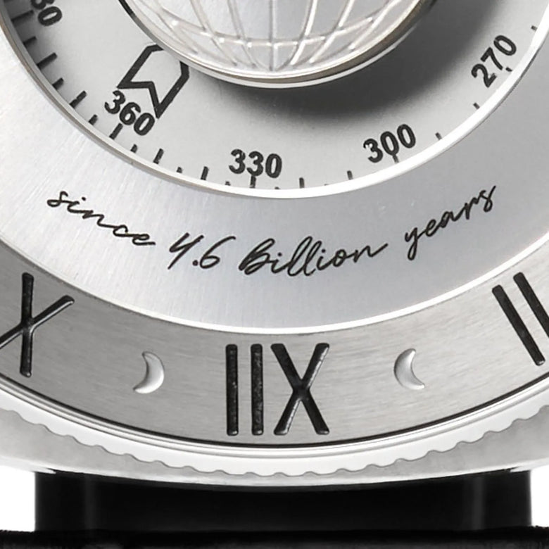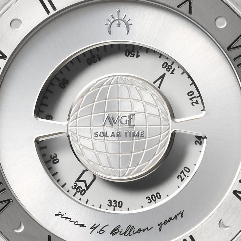The founding idea of the Since 4.6 Billion Years was to recreate this natural reading of time, not through the shadow of a sundial, but through a hand, as on a watch, capable of indicating true solar time and adjustable to time zones.