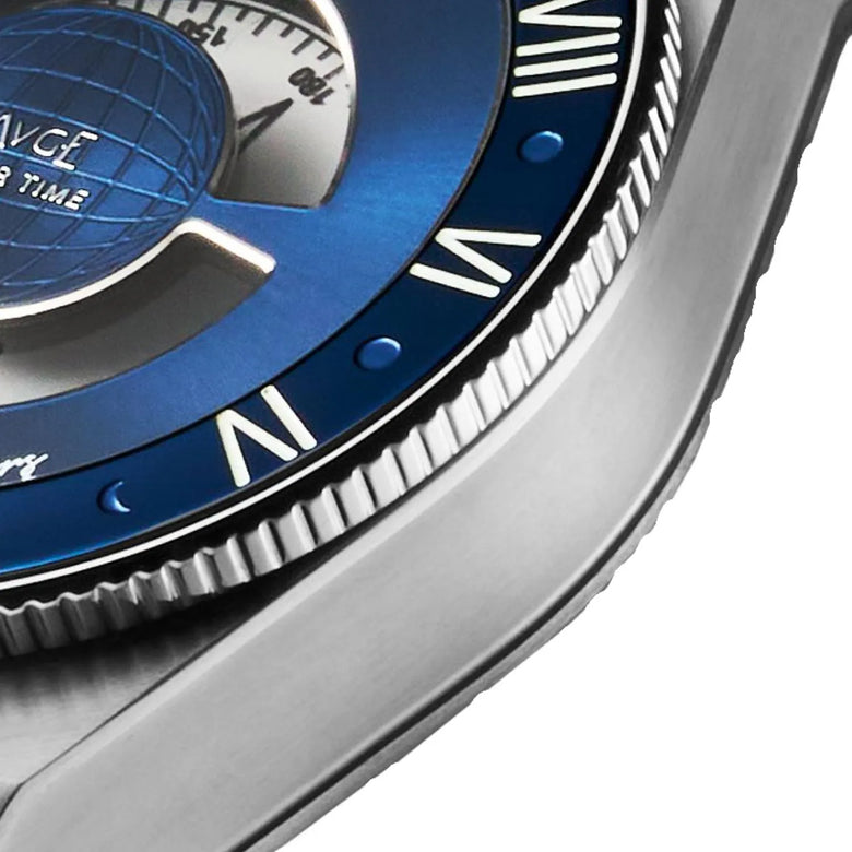 At its center, the engraved Earth covers the compass and echoes the magnetic field, while the bezel’s symbols distinguish day from night. An iconic and intuitive design, conceived to be understood far beyond our time.