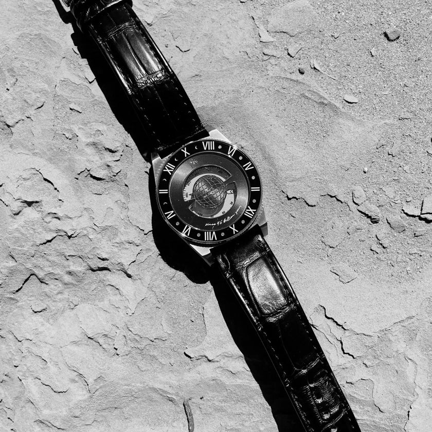 The compass, a mechanism of remarkable precision designed by the Finnish navigation specialist Suunto, is described as global. It functions anywhere on the blue planet, revealing to the wearer of the Since 4.6 B.Y.R.S. the time, wherever they explore north of the equator.