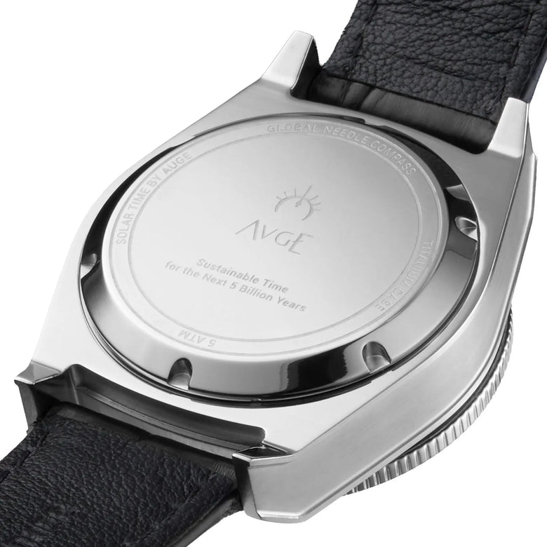 Of exceptional durability, biocompatible and inalterable, Grade 5 titanium embodies Augé’s desire to create a watch built to endure for generations. Machined with multiple surface finishes, it gives the case a depth of texture where light reveals its many nuances.